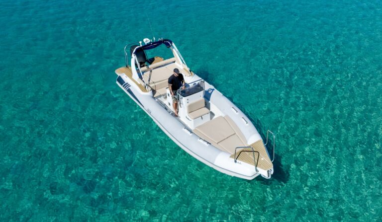 Perfect for large groups of up to 10 people, our Offshore RIB allows you to conquer the Aegean waves with ease. Whether you are planning a fast-paced day trip to Delos and Rhenia or a long-distance island hopping journey to Santorini or Paros, this boat delivers a smooth and luxurious ride even in challenging weather conditions.